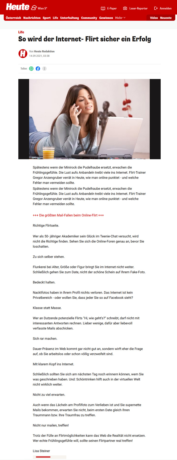 Sie gelten als DIE Flirtexperten Österreichs und werden daher sehr gerne